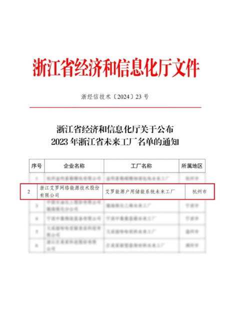 2024:“DB电子能源户用储能系统”上榜浙江省未来工厂